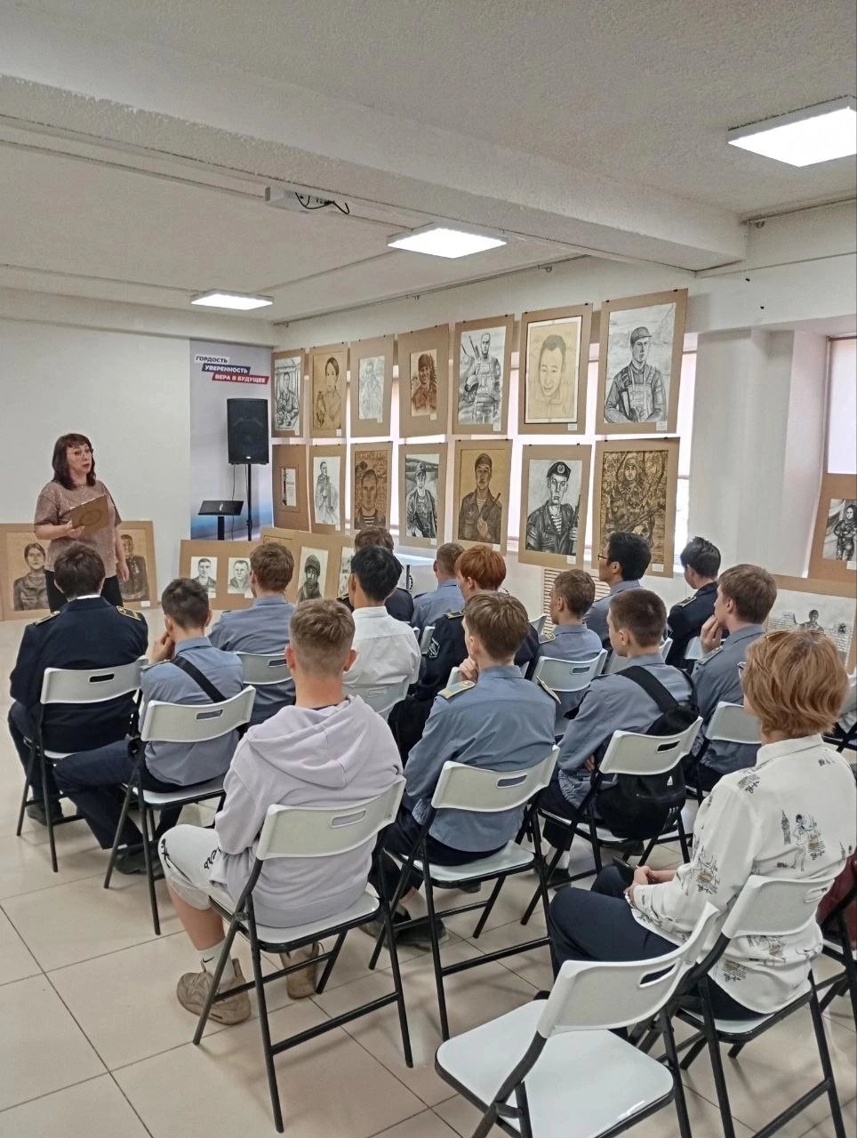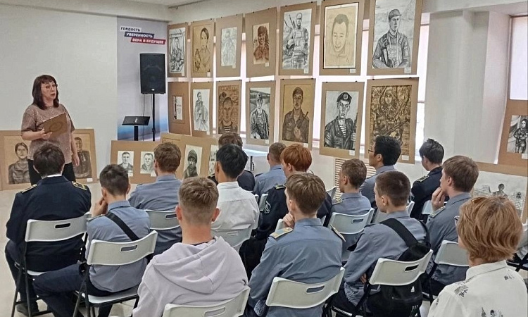 В программе урока было посещение выставки «Уголь земли Русской», просмотр документального фильма «Отважные. С любовью» и встреча с участниками специальной военной операции, членами БРО ВООВ «Боевое Братство».