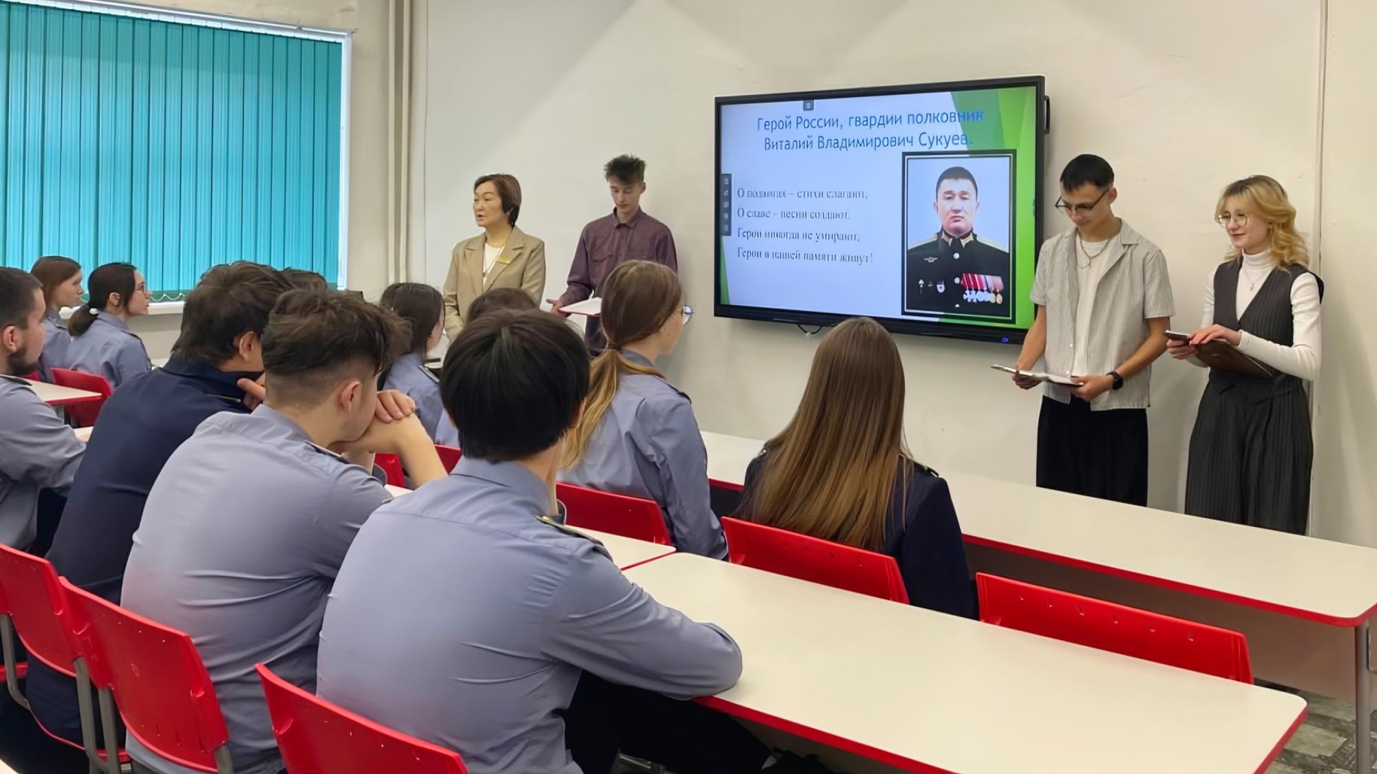 Студенты 2, 3 курсов УУКЖТ специальностей ЭПСл и СТ узнали о полковнике Виталии Сукуеве, прославленном уроженце нашей родной Бурятии. Он отдал военной службе 24 года, был в горячих точках, удостоен наград. Самая высокая из них- звание Героя России, полученное посмертно. Мы должны помнить наших героев, всех кто сражался и сражается за наше мирное небо.