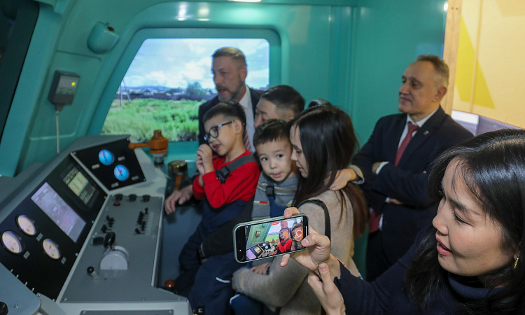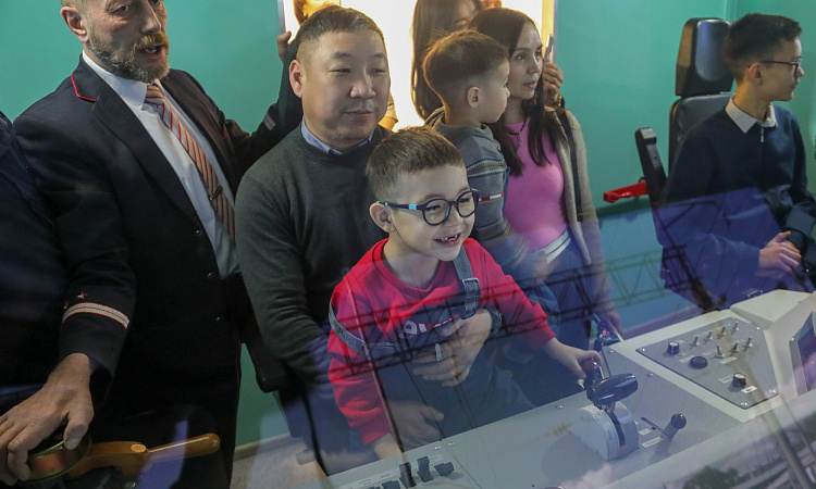 Для этого сегодня УУКЖТ ИрГУПС посетил юный мечтатель Аян со своим братом и родителями, чтобы прокатиться на тренажере тепловоза и почувствовать себя покорителем стальной магистрали.