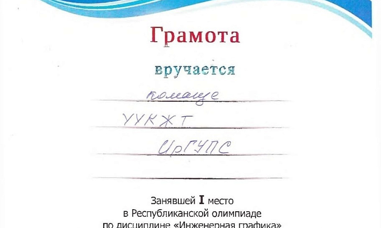 УУКЖТ ИрГУПС заняло 1 место в республиканской олимпиаде по дисциплине "Инженерная графика"