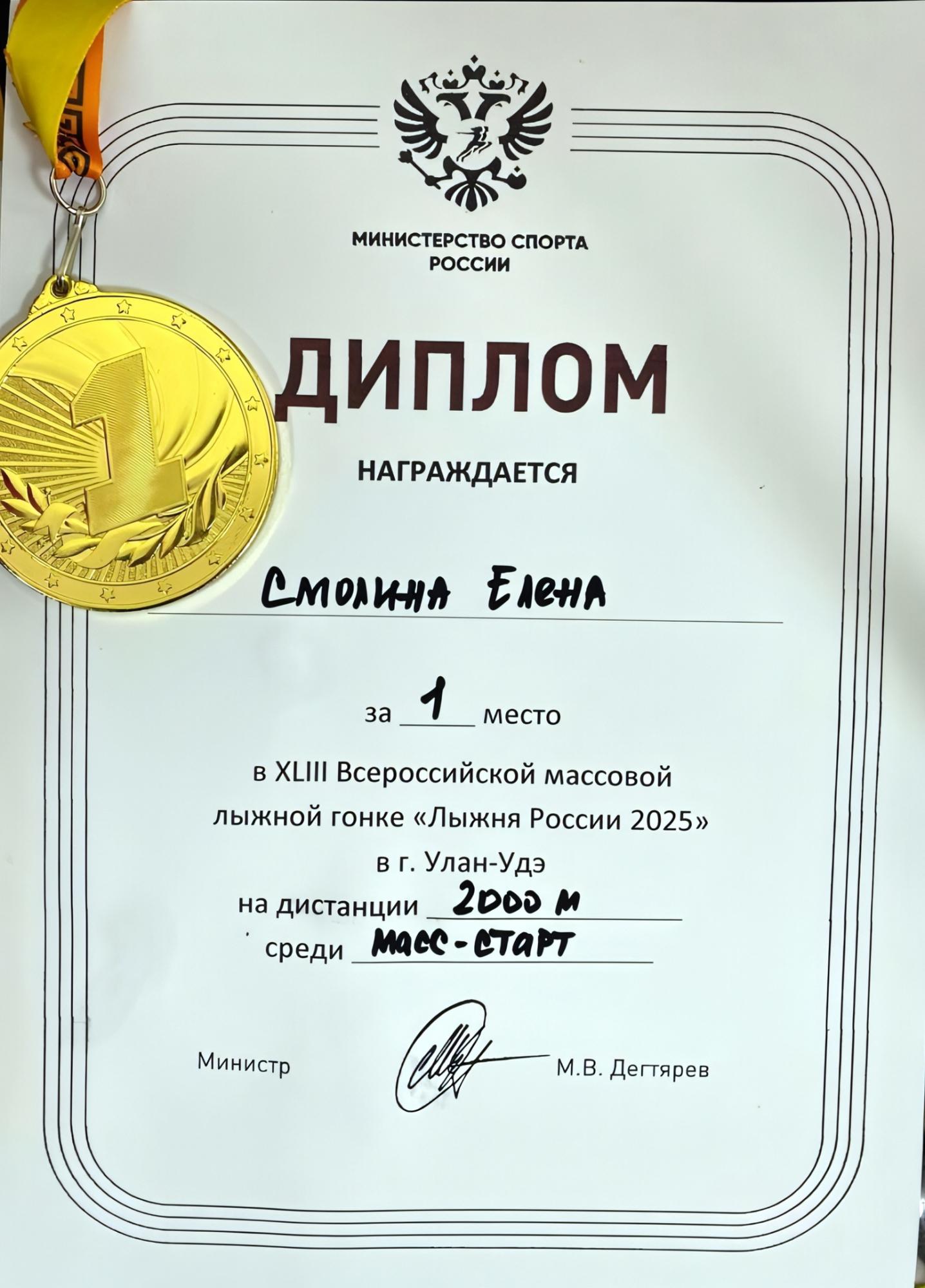 1 место на дистанции 2000 метров среди масс- старт. Благодарим участников, поздравляем Елену!