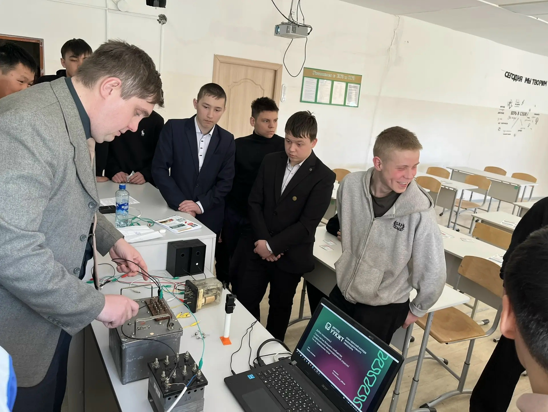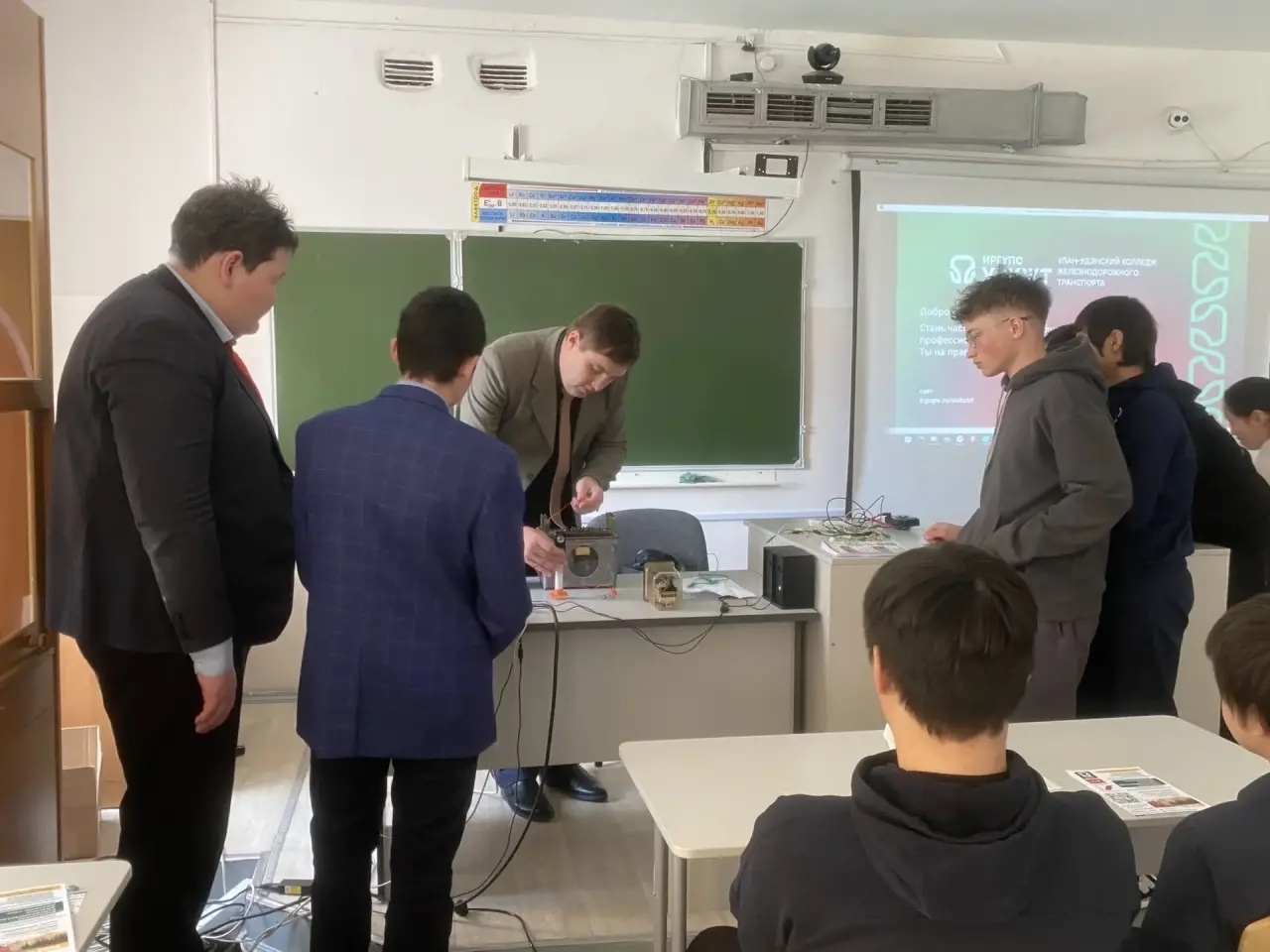 Рустам Наильевич провел мастер-класс по сборке схемы переключения сигнальных огней переездных светофоров, рассказал о перспективах развития железнодорожной отрасли, о преимуществах Федерального проекта «Профессионалитет», об условиях и правилах приема в колледж.