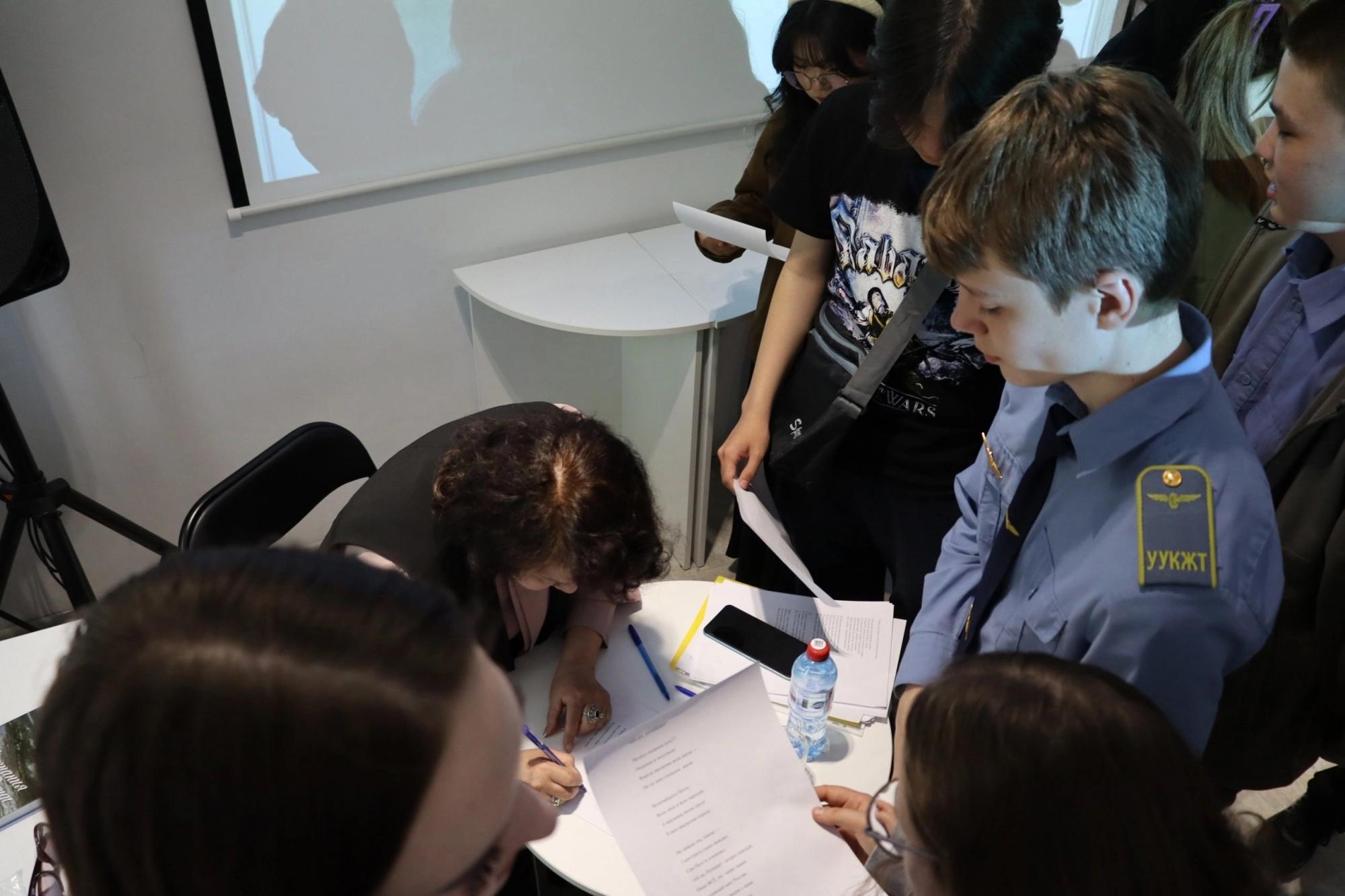 В завершение прошла автограф-сессия: Елизавета Михайловна оставила каждому участнику автограф на распечатке стихотворения "АЙ-ДА, ПУШКИН!".