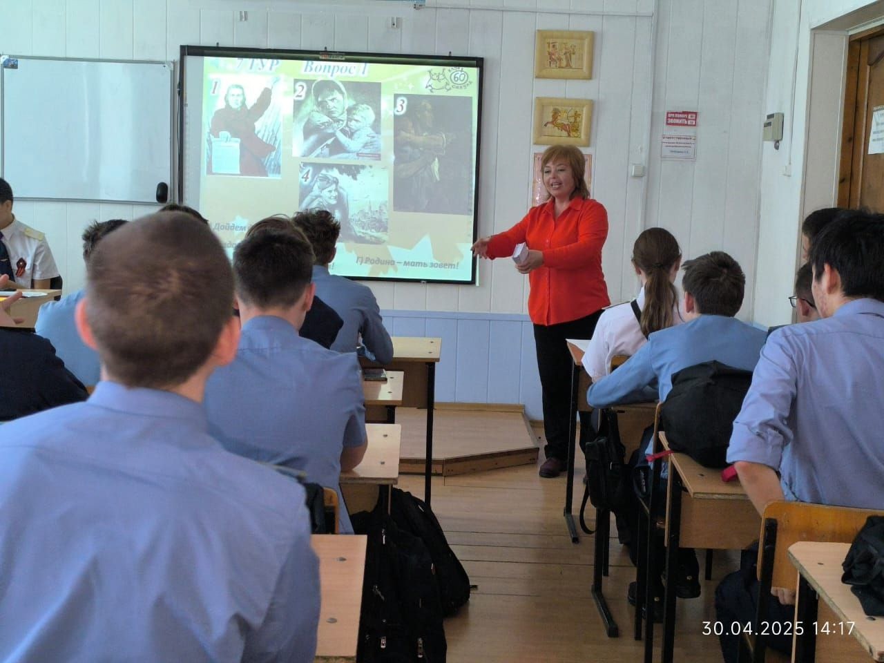 Также, ребятам был представлен обзор книжной выставки "Читаем книги о войне ", оформленной в читальном зале.