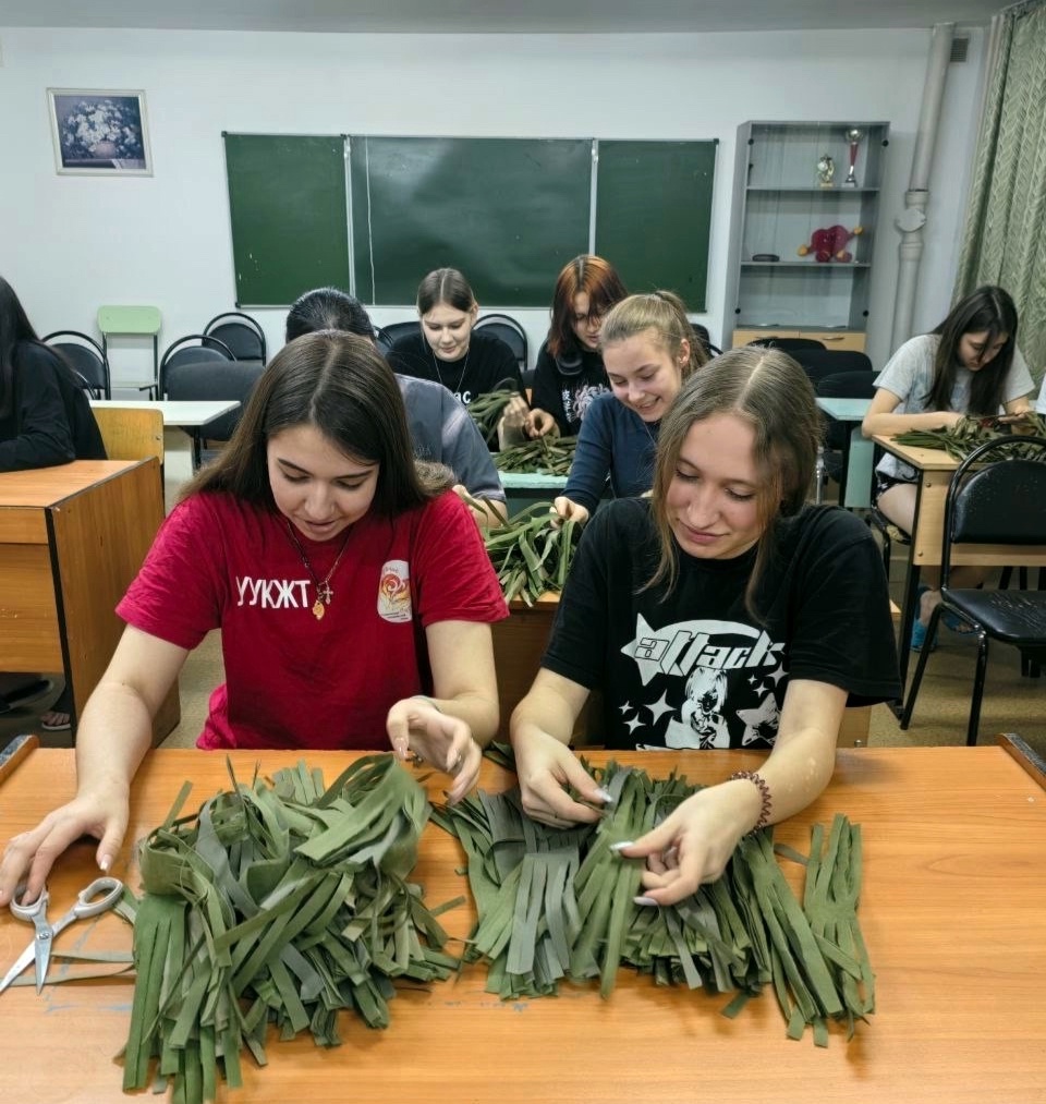 Студенты, проживающие в общежитиях колледжа, внесли свой вклад в помощь нашим военнослужащим СВО. Каждому нашлось дело: кто-то приносил материалы, кто-то помогал с нарезкой полосок ткани. Техника плетения маскировочной сети несложная, но трудоёмкая. Чтобы сделать трёхметровое полотно, потребуется несколько дней.