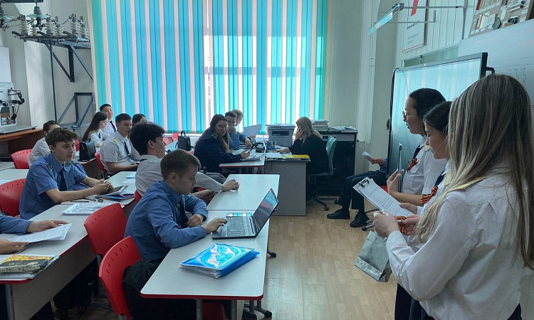 Активисты студенческого самоуправления совместно с Движением Первых провели викторину на тему Великой Отечественной войны и вручили георгиевские ленты.