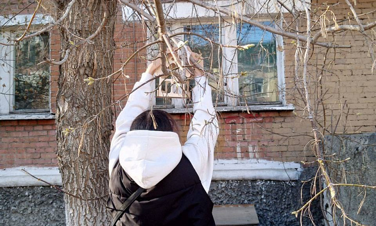 Активисты Движения Первых повесили скворечник для пернатых возле общежития номер 2.