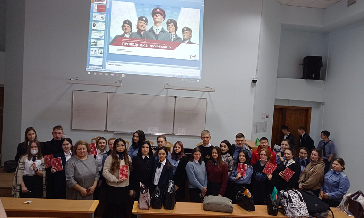 24 ноября 2021г. в рамках сотрудничества Отделения ПП и ПК УУКЖТ с АО «Федеральная пассажирская компания» состоялась встреча представителей компании с обучающимися 3 курсов специальностей: 23.02.06 Техническая эксплуатация подвижного состава (вагоны), 43.02.06 Сервис на транспорте, 23.02.01 Организация перевозок и управление на транспорте (по видам). Было проведено профориентационное мероприятие в целях популяризации профессии «Проводник пассажирского вагона» и продвижения бренда АО «Федеральная пассажирская компания». На встрече присутствовали: ведущий специалист по управлению персоналом Восточно-Сибирского филиала Юдина Н.В. и инструктор поездных бригад Варфоломеев Н.А. Они продемонстрировали презентации, видеоролики, провели беседу и викторину с вручением символических призов
