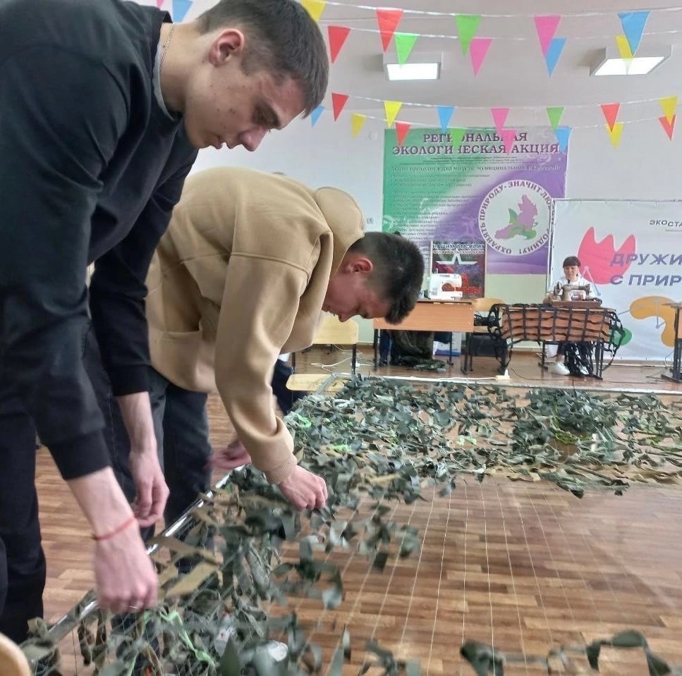 Активисты отряда «Солнце на ладони» изготовили маскировочные сети и костюмы