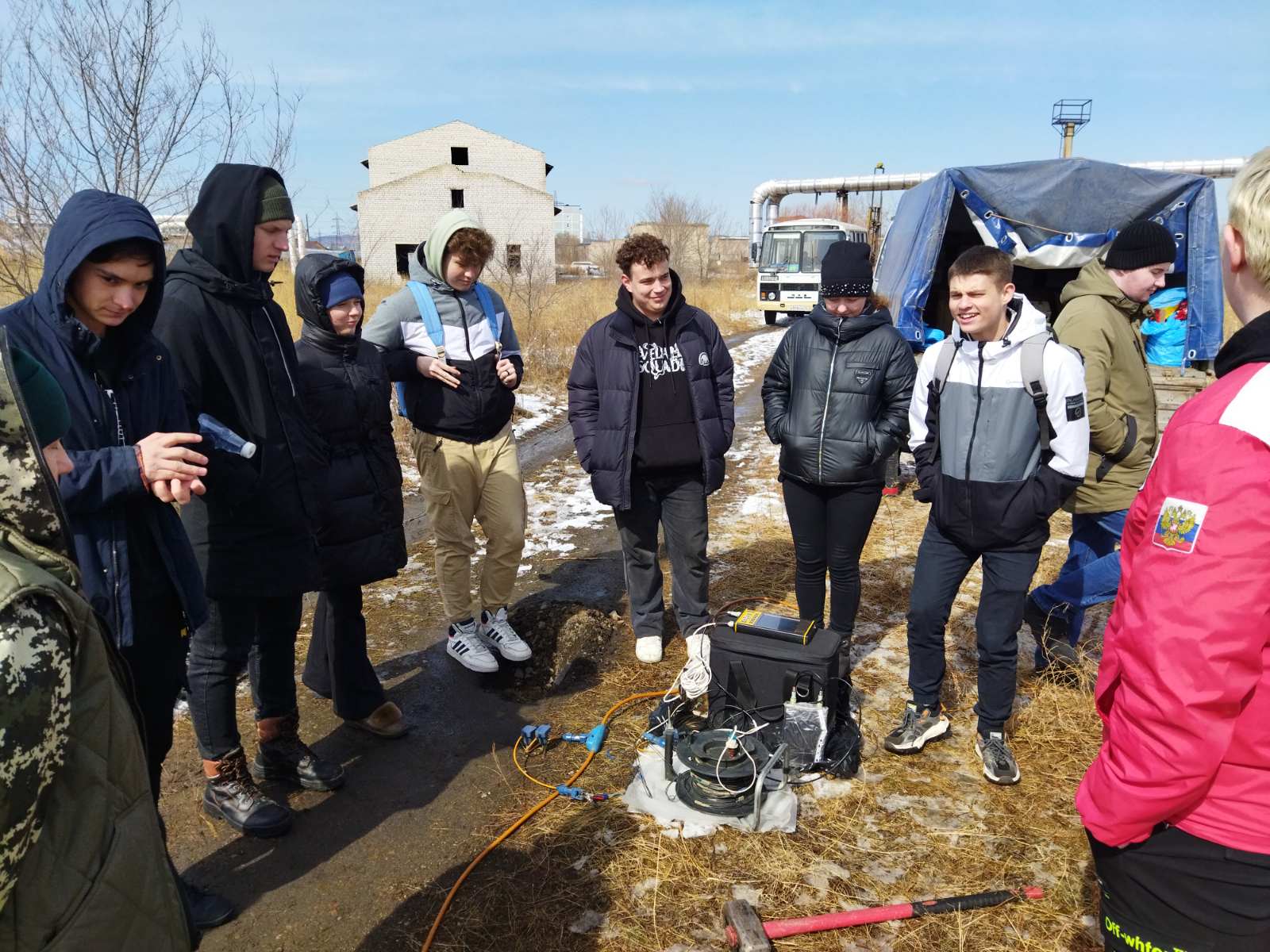 Студенты стали свидетелями, а некоторые, особо рьяные и исполнителями (с соблюдением техники безопасности) процедуры бурения скважины, отбора проб, а также геофизических исследований – микросейсморайонирования, электроразведки – вертикального электрического зондирования. Будущие проектировщики и строители ознакомились с выполнением термометрических измерений в скважинах, узнали, как и для чего выполняется контроль за температурным режимом грунтов при проектировании и во время эксплуатации линейных объектов, зданий и инженерных сооружений различного назначения. Работу выполнял ЗабайкалТИСИЗ. Огромное спасибо тресту инженерных изысканий и водителю Виктору Фадееву.