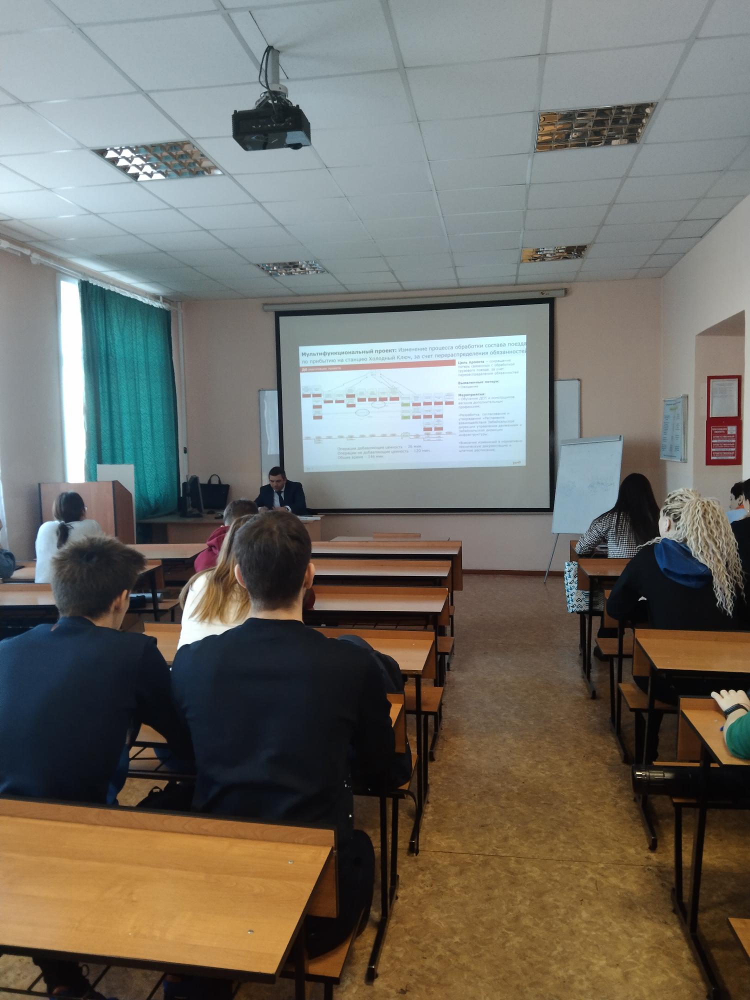 Третьего ноября начальник отдела технического, технологического сопровождения и развития пропускных способностей Забайкальской дирекции управления движением Сергей Дружин провел тематическую лекцию движенцам 4 курса очной и заочной форм обучения на тему «Система менеджмента качества. Бережливое производство».