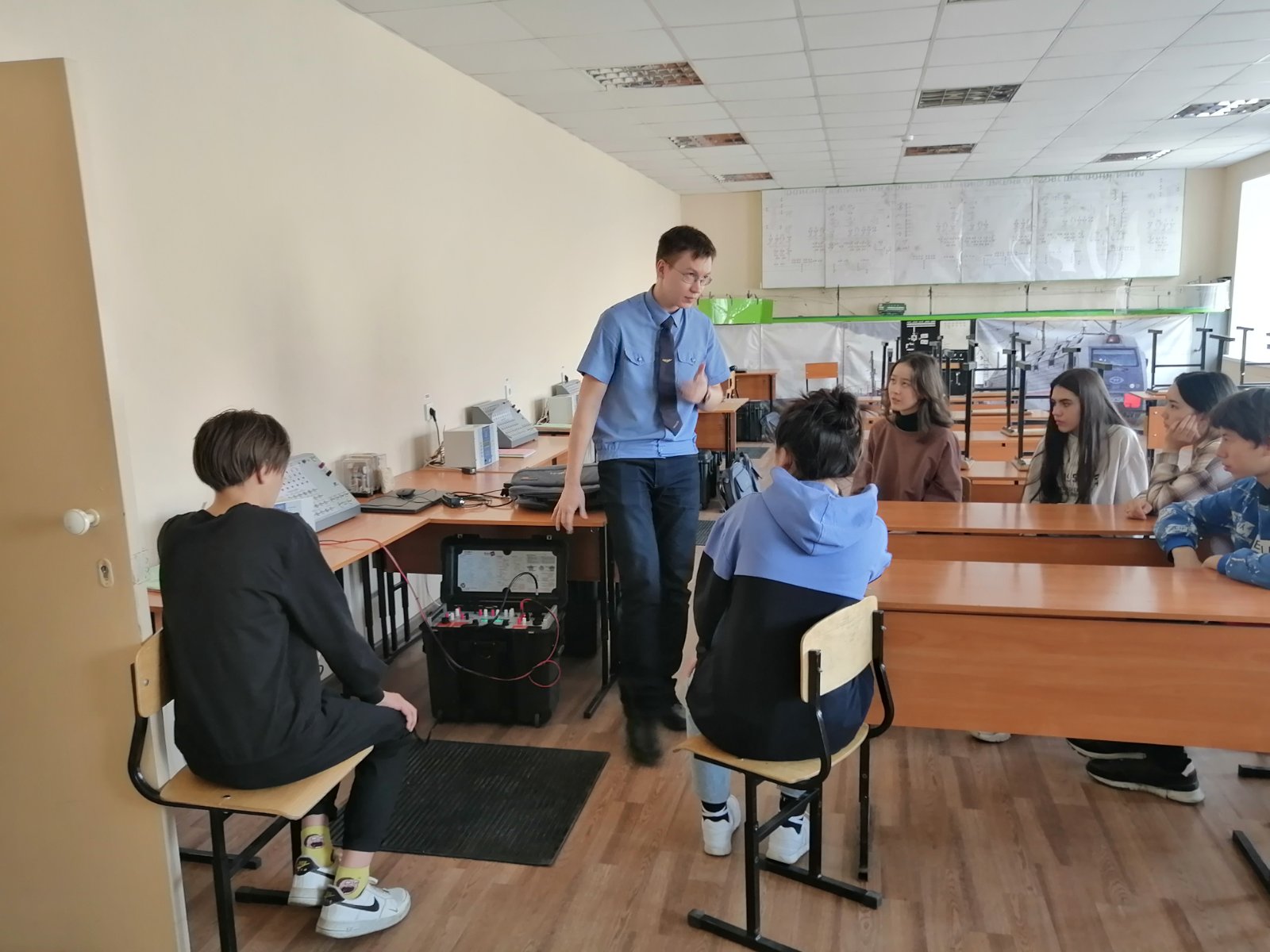 Ребята ознакомились с материально-технической базой техникума: прокатились на локомотиве на новом тренажерном комплексе тягового подвижного состава, побывали в лабораториях отделения АЭС, где им подробно и наглядно объяснили особенности подготовки будущих специалистов для железнодорожной отрасли. Также школьники посетили актовый и читальный зал, спортивный комплекс и полигон технической эксплуатации и ремонта пути.