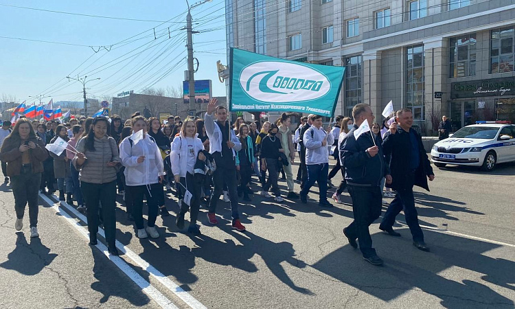 Коллектив преподавателей, студентов и лицеистов Забайкальского института железнодорожного транспорта встретил Первомай!