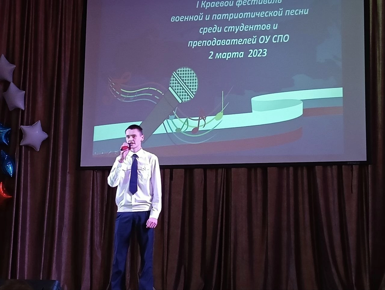 Первый краевой фестиваль военной и патриотической песни «Солдатская песня» среди студентов СПО Забайкальского края состоялся 2 марта 2023 г. на базе ГПОУ «Читинский политехнический колледж». В мероприятии приняли участие студенты и преподаватели из семнадцати учебных заведений СПО города и края.