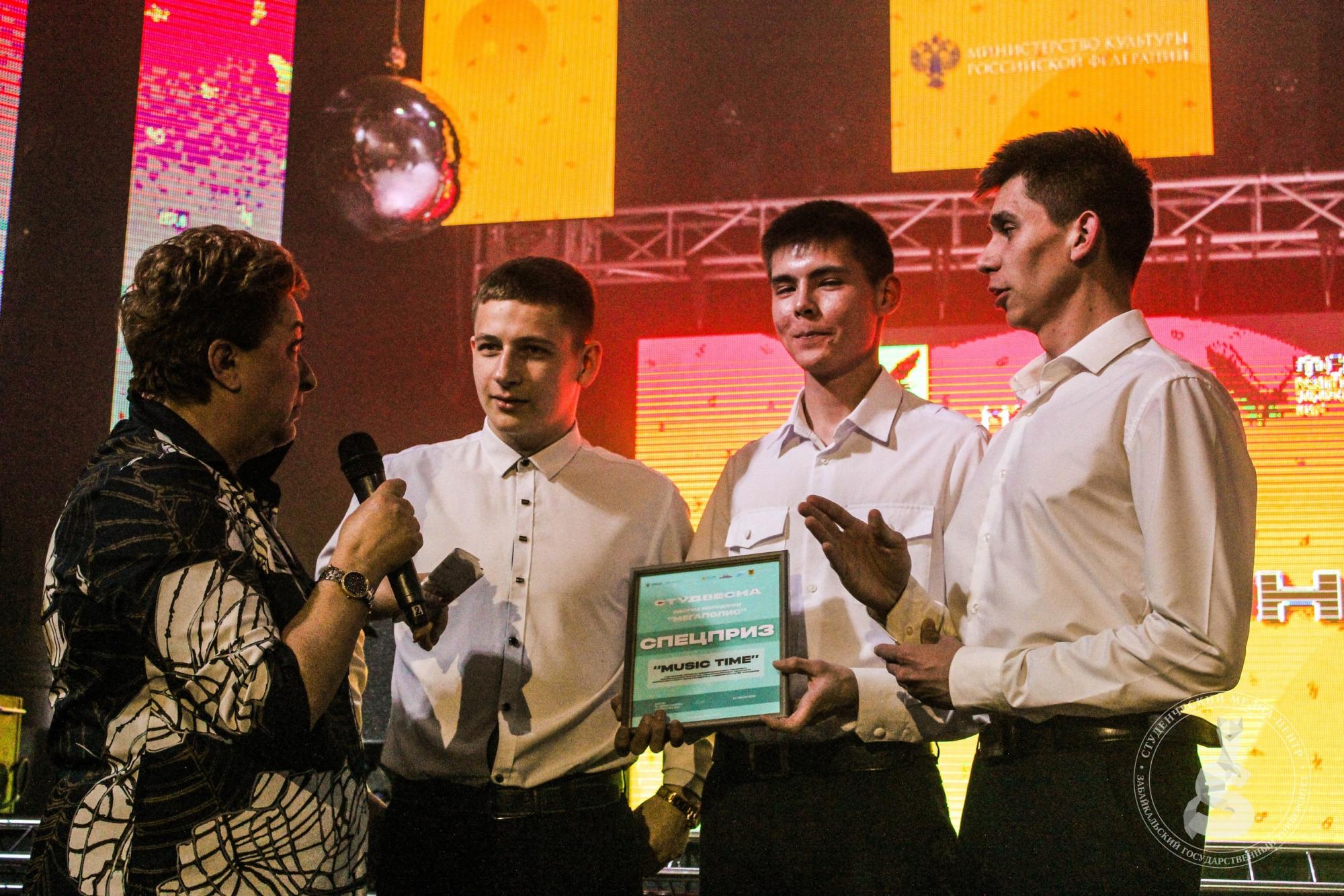 Вокальная студия "Music Time" Читинского техникума была отмечена специальным призом от Дворца молодёжи "Мегаполис" за патриотизм и активную гражданскую позицию. Касьянов Максим - отмечен специальным призом от Дворца молодёжи "Мегаполис" за талант, харизму и вокальные данные.