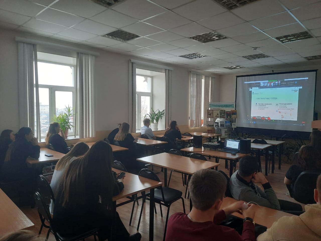 В рамках данного мероприятия студенты познакомились с компанией «РЖД» и её основной деятельностью, особенностями и инновационными подходами, получили информацию о профессиях, востребованных в компании, социальных гарантиях и карьерных возможностях, а также узнали о молодежных организациях компании и реализуемых проектах.