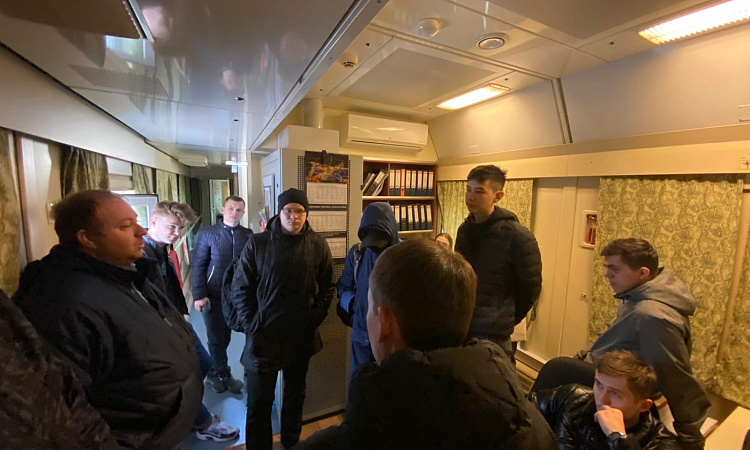 Экскурсию для студентов провел начальник вагона-лаборатории Павел Лепендин. Она началась с ознакомления с правилами техники безопасности, внешними составляющими вагона и оценкой электробезопасности. Более детально рассмотрели его оборудование и предназначение - проверка и испытание контактной сети: большое количество данных измеряются и записываются на специальные носители приборами-регистраторами, которые затем передаются в дистанцию пути (ПЧ).