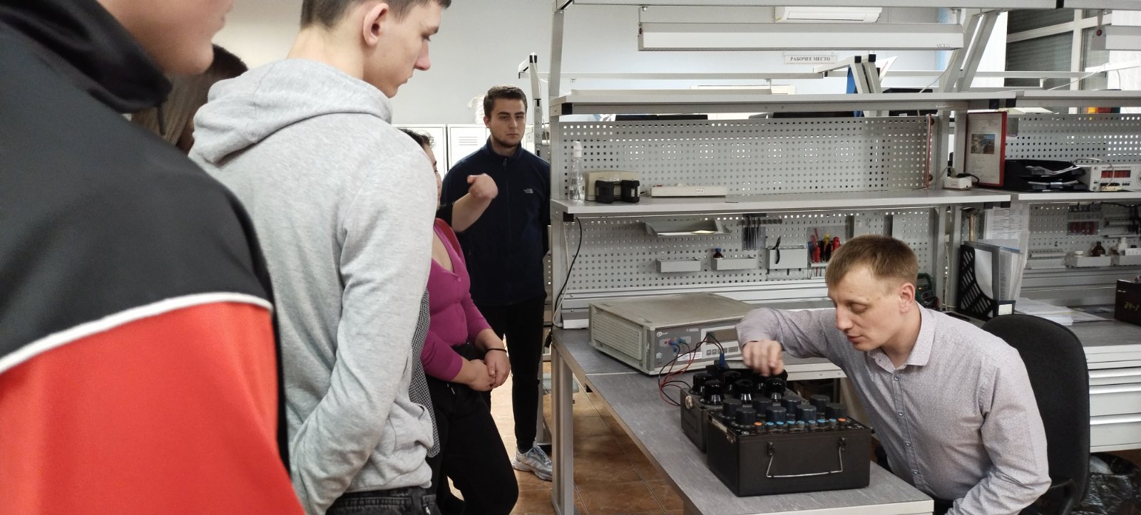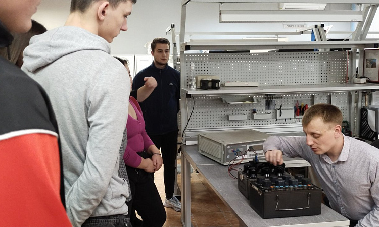 В ходе экскурсии вниманию студентов были представлены рабочие места по поверке радиотехнических, электротехнических средств измерений, отделение по метрологическому обслуживанию геометрических средств измерений и средств измерений давления, место по поверке технических и кислородных манометров.