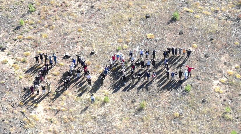 Началась посадка с акции «Za лес» — волонтеры выстроились в название акции. Волонтеры считают, что только общими усилиями можно сделать хорошее и благое дело.