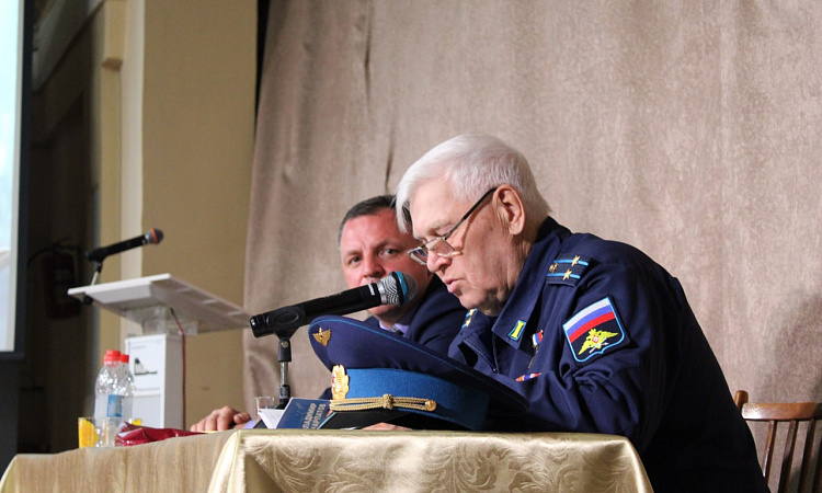 В завершение встречи летчик ответил на вопросы студентов, подарил экземпляр своей книги, вымпел Ассоциации Героев России.