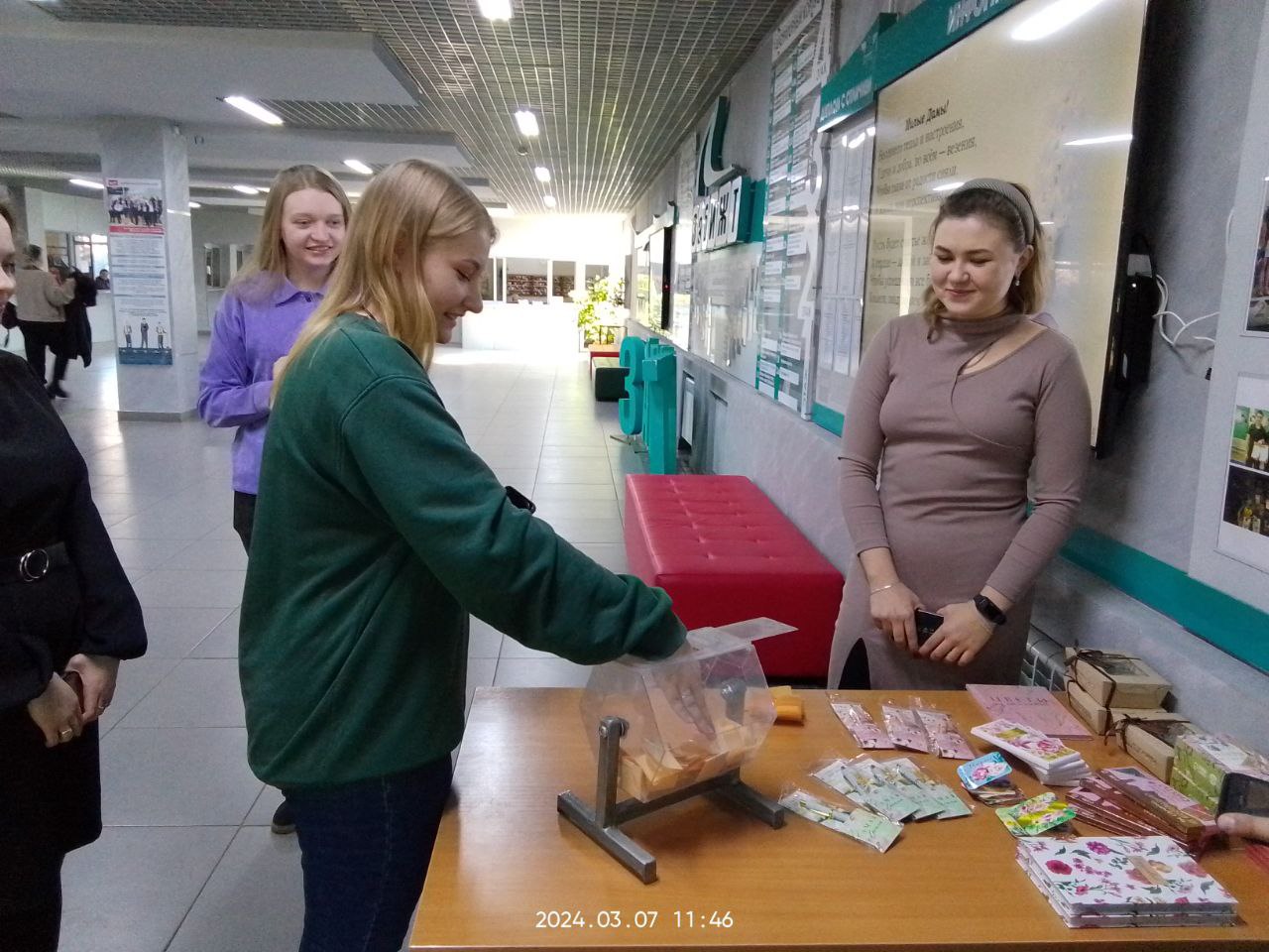 Праздничный день 8 марта отметили в Забайкальском институте железнодорожного транспорта. Студенты встречали женщин - работников института цветами и поздравлениями. Первичная профсоюзная организация студентов провела в фойе беспроигрышную лотерею, а завершился день завершился ярким концертом, посвященным Международному женскому дню: прозвучали музыкальные номера, участники танцевали, читали стихи, в исполнении инструментальной группы "ТриД+" прозвучали музыкальные композиции, посвященные любви, мечтам и счастью. Атмосфера праздника и единства создала положительные эмоции и впечатления от концерта.