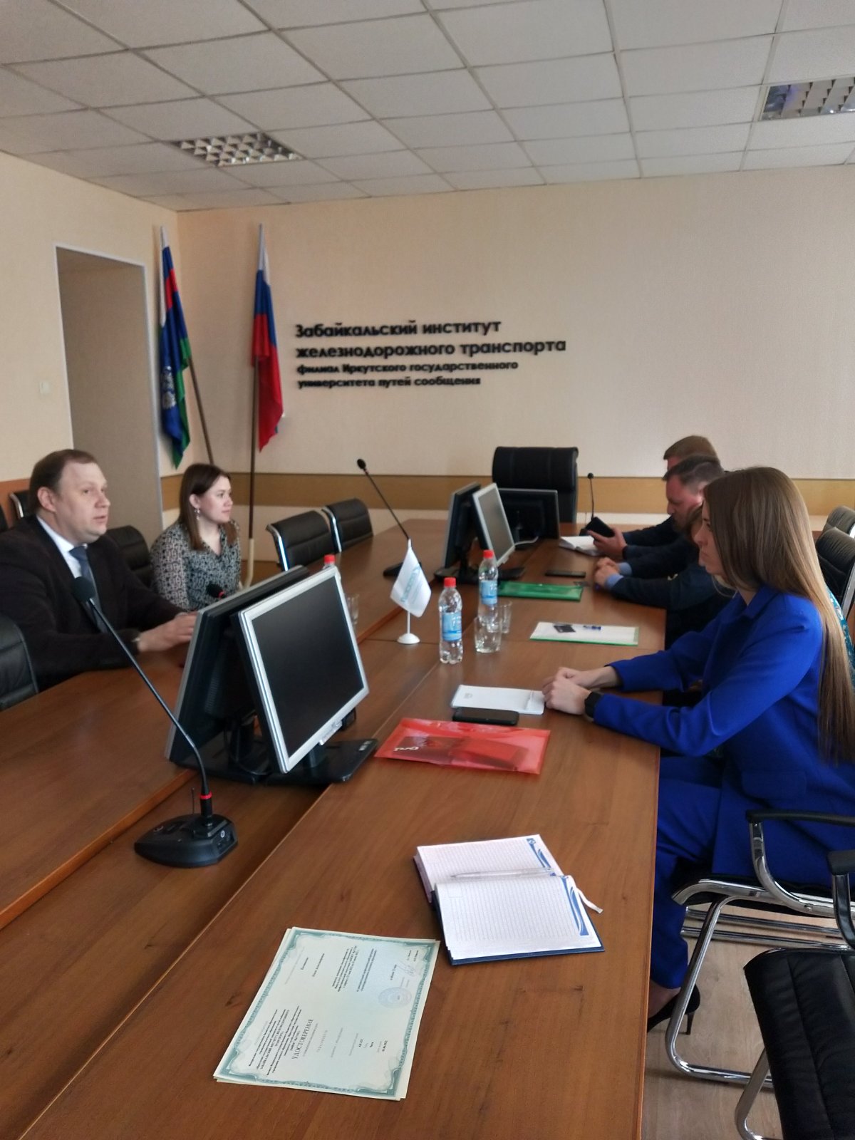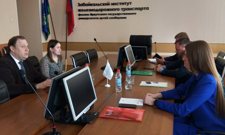 1 июня 2022 года в Забайкальском институте железнодорожного транспорта прошла встреча с директором управления обучения и развития персонала Новой вагоноремонтной компании Константином Капитоновым. От ЗабИЖТ на встрече присутствовали и.о. директора Александр Ерёменко, и.о. заместителя директора по учебной и воспитательной работе Алексей Ларченко, и.о. заместителя директора по науке и дополнительному образованию Дмитрий Яковлев, заведующий кафедрой «Подвижной состав железных дорог» Татьяна Иванова, начальник отдела практической подготовки и содействия трудоустройству выпускников Ольга Калмыкова, студентка 5 курса специальности «Подвижной состав железных дорог» Алина Кондратьева.